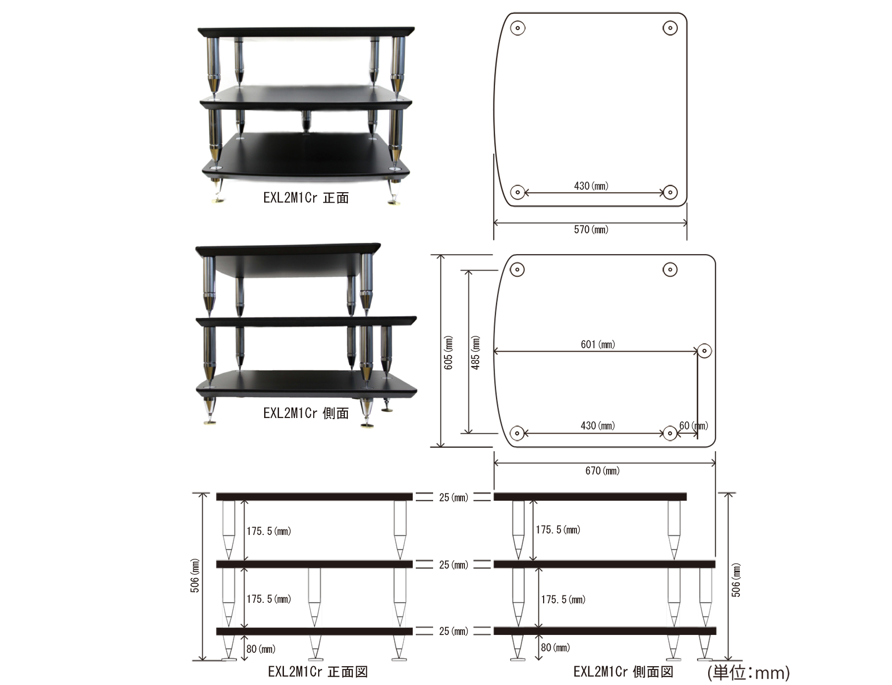 SOUNDMAGICのEXL2M1Crオーディオラックに棚を追加する際は追加オーディオボードEXL1CrまたはEXM1Cr+クローム支柱 CPAS105で追加が出来ます。